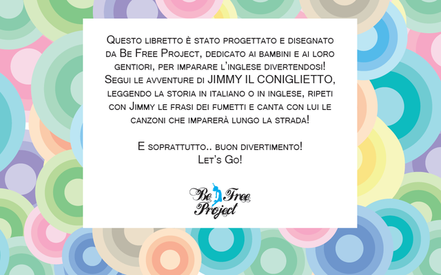 I Piccoli Libri “Learn the Future” sono Audiolibri progettati da Be Free Project, dedicati ai bambini e ai loro genitori, per imparare l’inglese divertendosi. Segui con il tuo bambino le avventure di JIMMY IL CONIGLIETTO, leggendo la storia in Italiano e in Inglese.